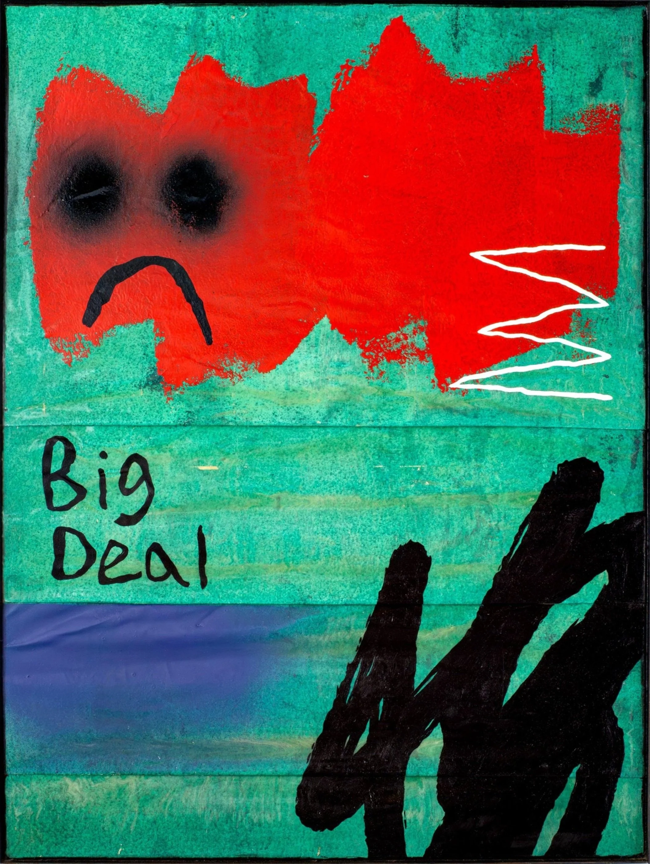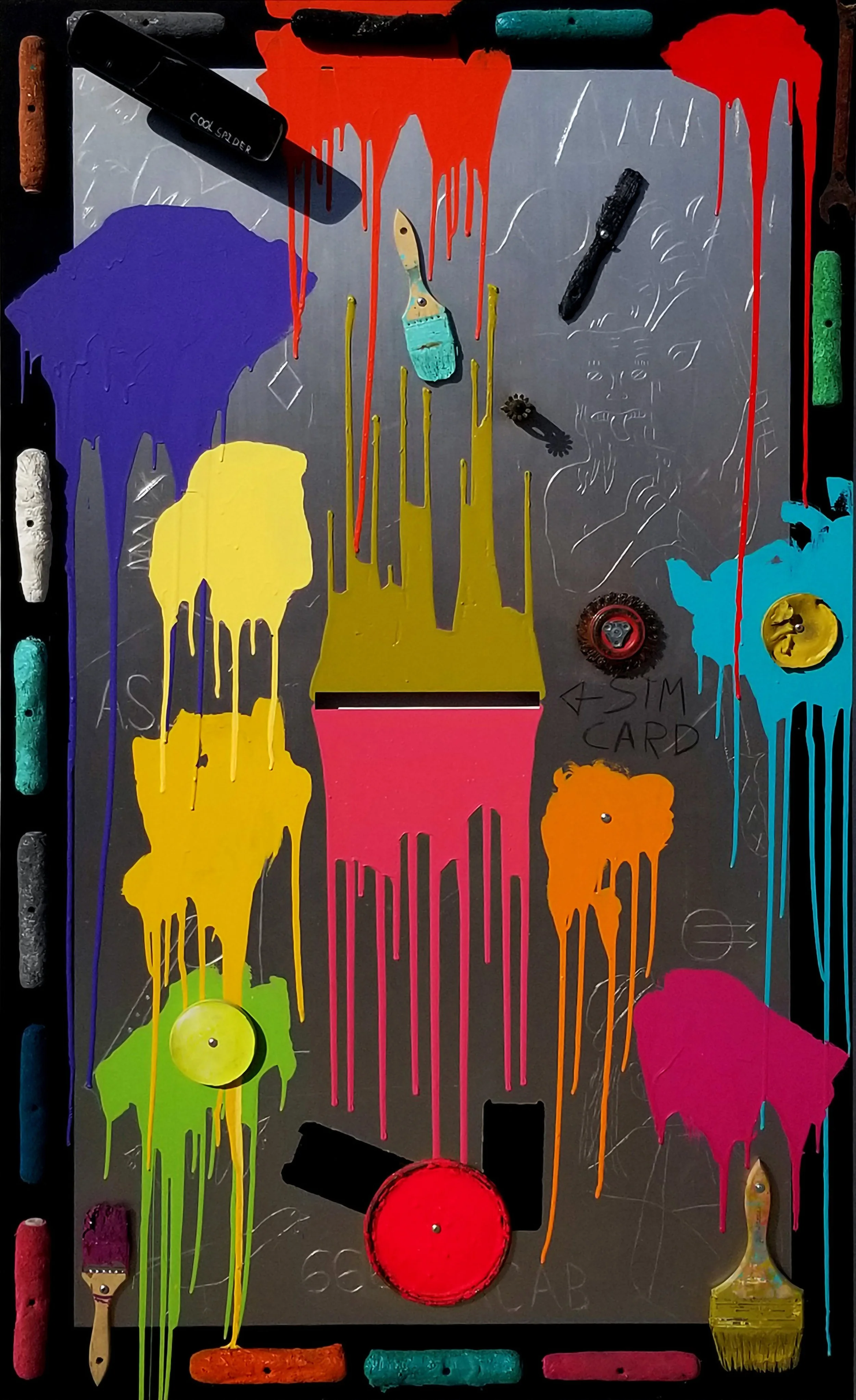 Acrylic, industrial enamel and popcorn ceiling texture on corrugated steel